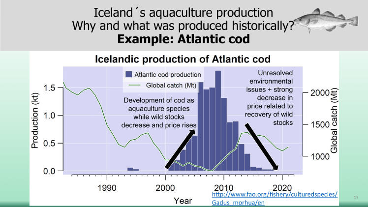 A broad overview of past and current global aquaculture production that narrows down towards an Icelandic perspective.