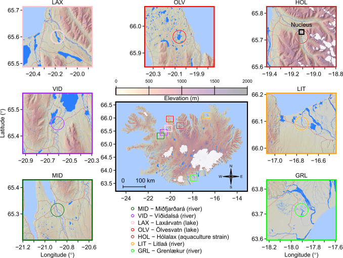 The Icelandic Arctic charr breeding programme was initiated in 1989 based on individuals from 9 different Icelandic populations (see below) and is running since. The first selected cohort was generated in 1993 and we are currently housing fish selected for up to 9 generations. The breeding station is situated in Hólar, Iceland.